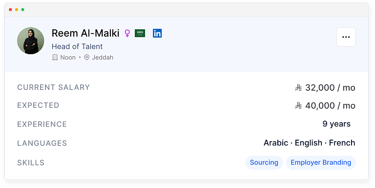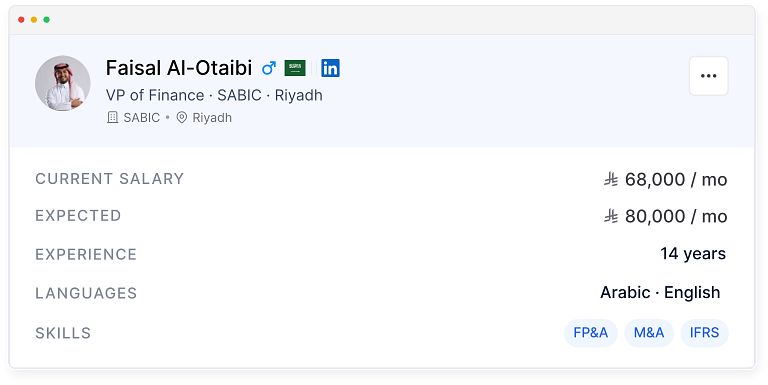 “Finally a talent database built for Saudi Arabia. The nationality filter and market salary data save us hours every single hire.”